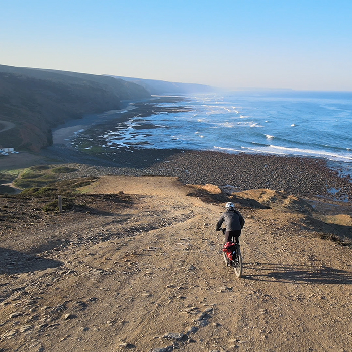 One of my favorite bike trips is this one along the southern coast of Portugal—starting in Costa Vicentina, often referred to as part of EUROVELO 1 or the Fishermen's Trail. With its rugged beauty and challenging terrain—sandy roads, some paths only suitable for hiking—it’s a route that requires a guide who knows how to navigate the best ways. That’s where I come in: let me lead you through these stunning landscapes, avoiding the tricky bits while still taking in the most beautiful spots.